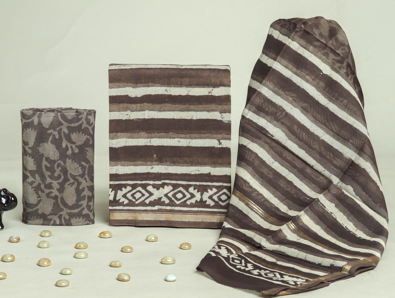 Chanderi Silk Unstitched Dress Material – Brown