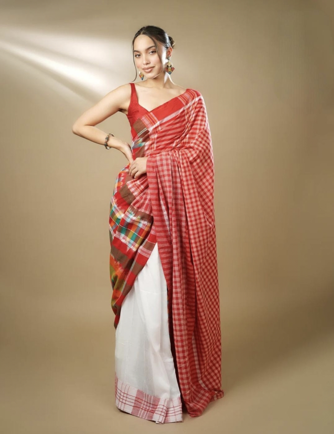 Gamcha Katki Khadi Cotton Handloom Saree – Red with Blouse