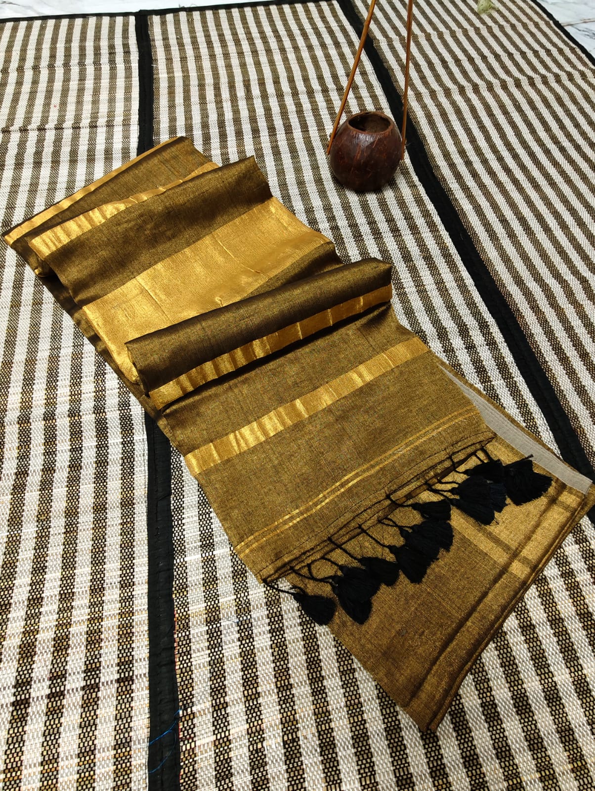 Handloom Tissue Cotton Saree – Gold