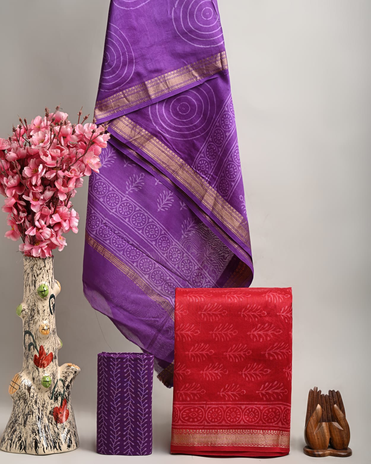 Be the first to review “Maheswari Silk Unstitched Dress Material – Red”