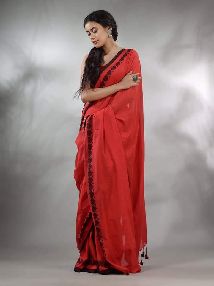 Pure Cotton Handloom Saree – Red with Blouse