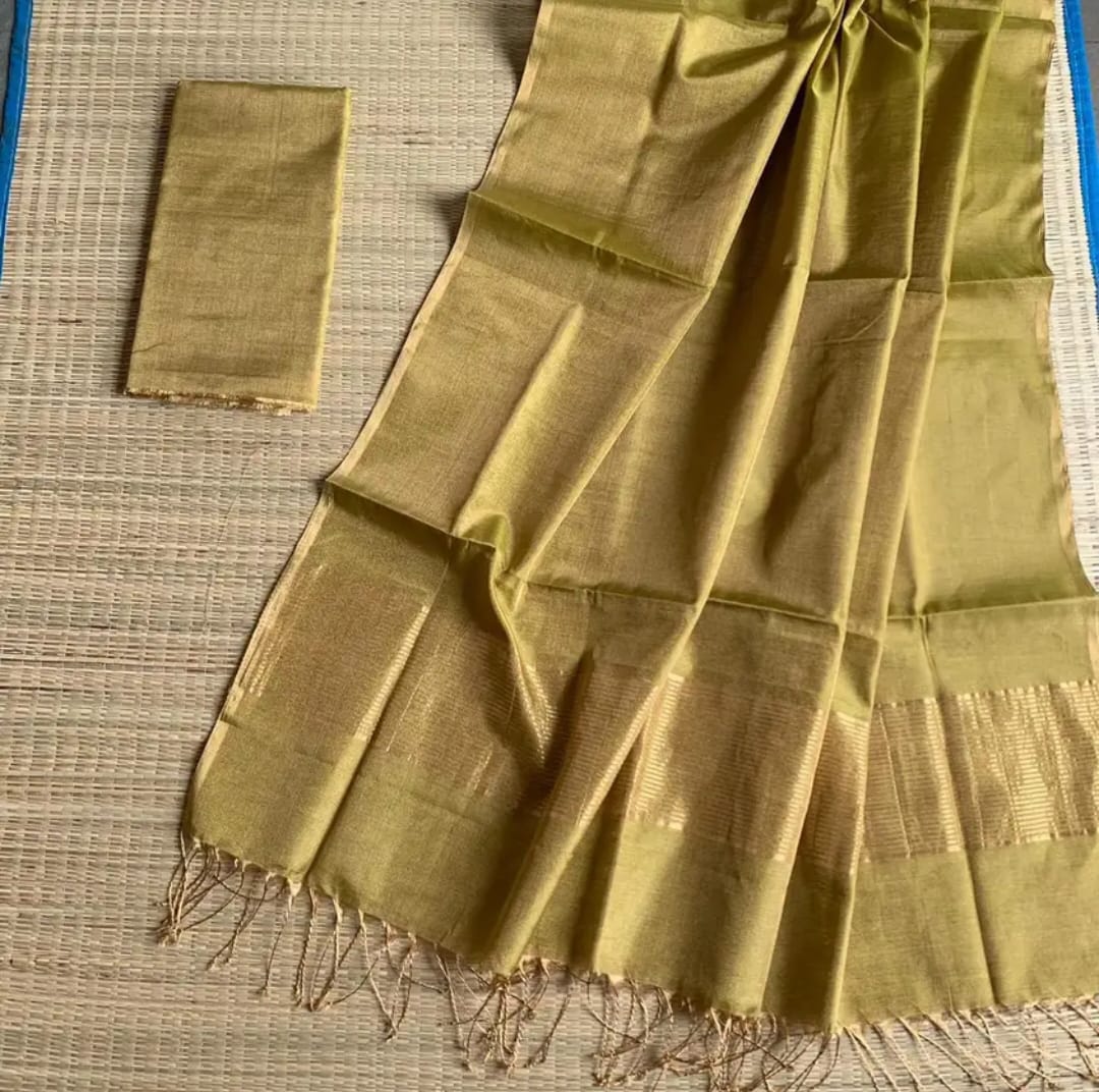 Raga Handloom Tissue Linen Saree – Green