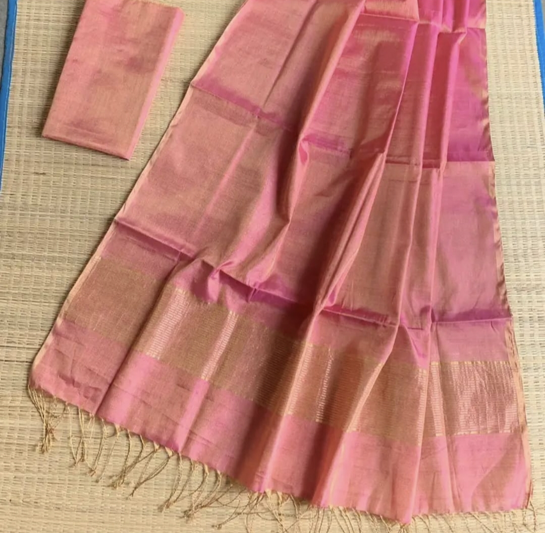 Be the first to review “Raga Handloom Tissue Linen Saree – Pink”