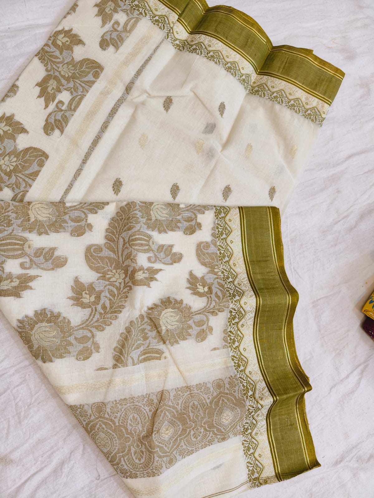 Tant Banarasi Cotton Handloom Saree – Cream without Blouse