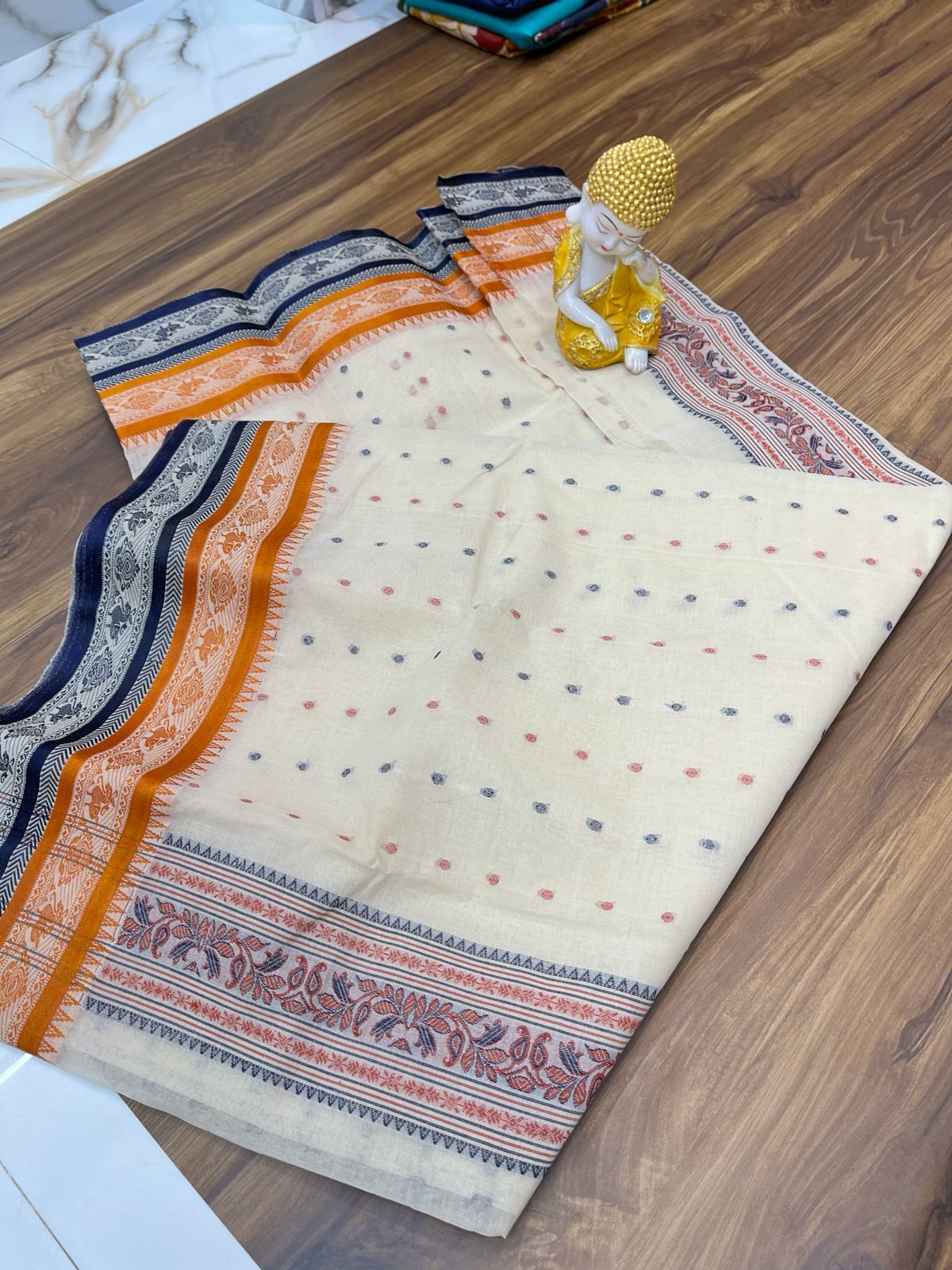 Tant Banarasi Cotton Handloom Saree – White without Blouse
